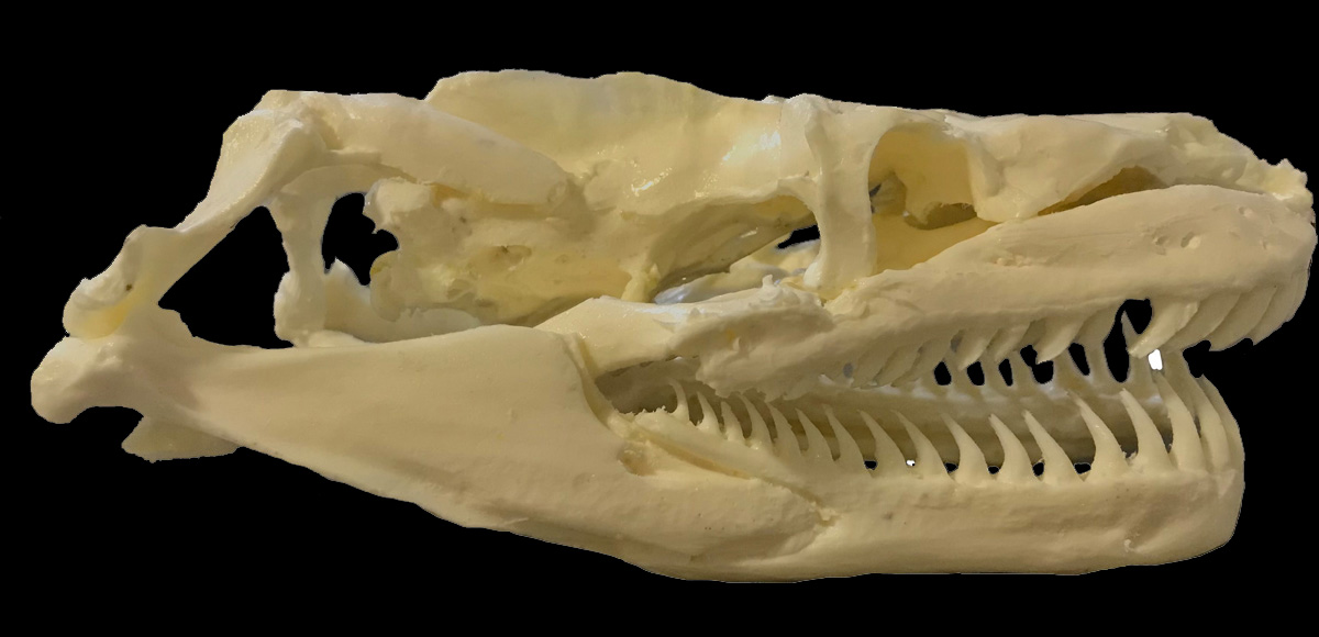 Réplica em resina de poliuretano de crânio de Píton (Python reticulatus) em tamanho real (15,4 centímetros de comprimento)